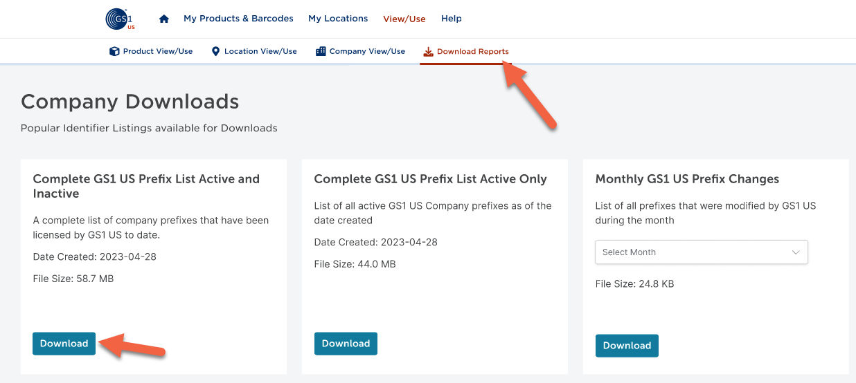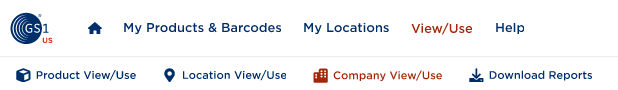 When you subscribe to Company View/Use, you can perform an online search for data by Company Name, GS1 Company Prefix, GTIN or GLN.