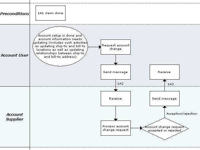 | 1A2 | Maintain Account | Supports a process whereby trading partner account information can be maintained, including activities such as updating ship-to and bill-to locations and the relationships between the addresses. |